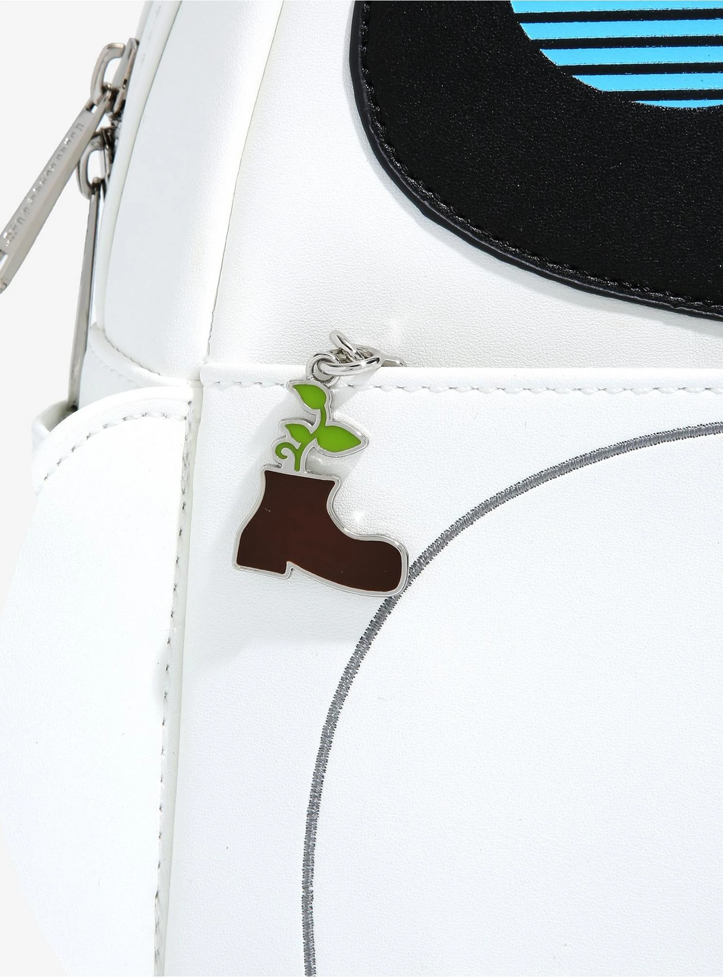 EVE is here and she’s ready to carry more than just plants and vegetation! Thanks to her Loungefly makeover, this WALL-E-inspired mini backpack of the adorable animated robot is ready to carry all of your daily essentials in cute Disney•Pixar fashion. With figural details of EVE’s arms and a switch-on illuminating green plant beacon, this mini backpack features an enamel brand badge, adjustable shoulder straps, silver-toned hardware, and an embossed “WALL-E + EVE” heart design on the back.