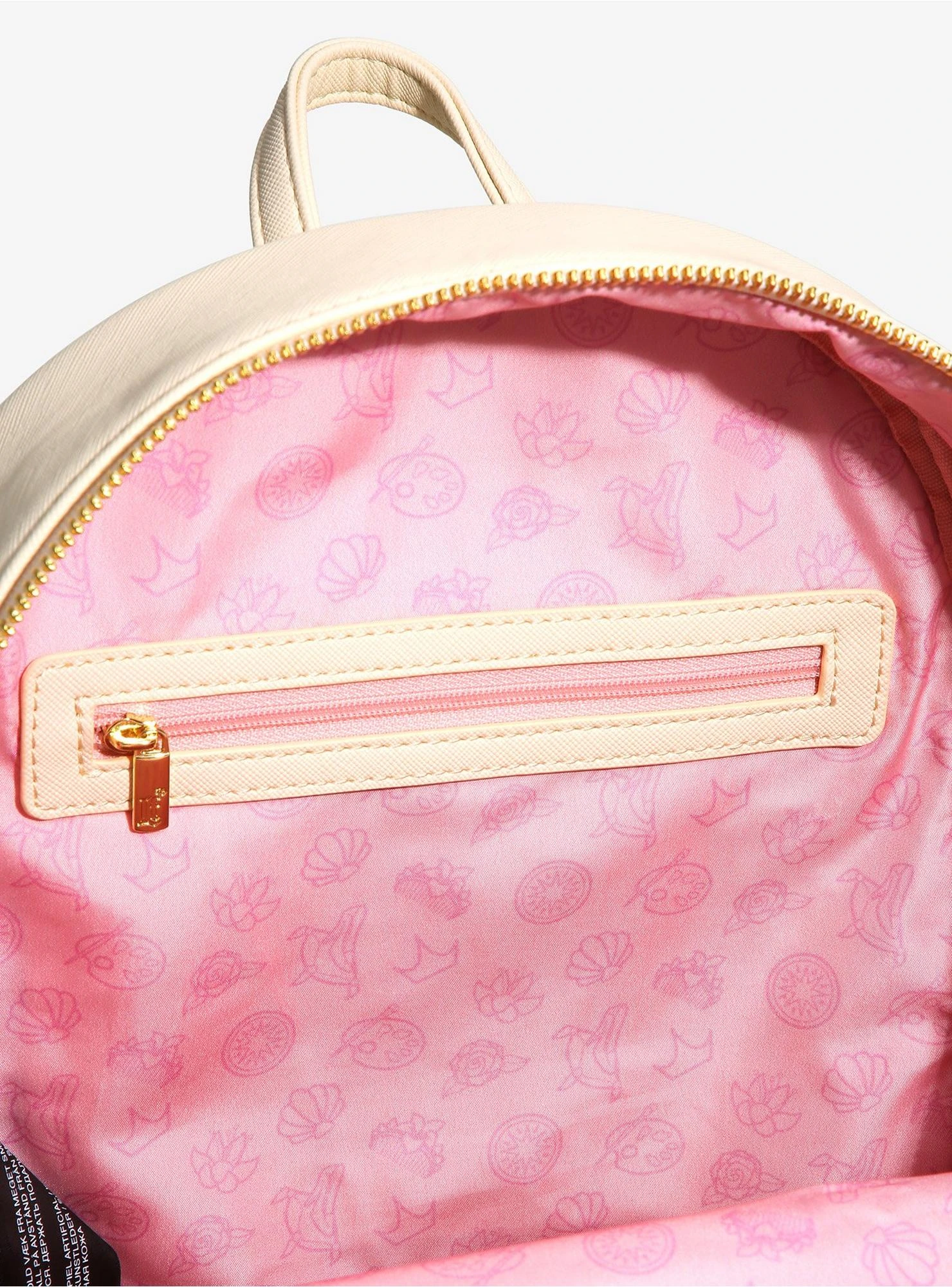 Carry all of your belongings in one sweet Disney Princess style! This Loungefly mini backpack features a front die-cut appliqué of a layered cake, with each layer featuring decorations inspired by Belle, Rapunzel, Ariel, and Tiana! The included detachable coin purse also features a cake appliqué with designs inspired by Cinderella, Pocahontas, and Mulan. Also features gold-toned hardware, adjustable shoulder straps, an enamel brand badge, and an icon interior lining pattern.