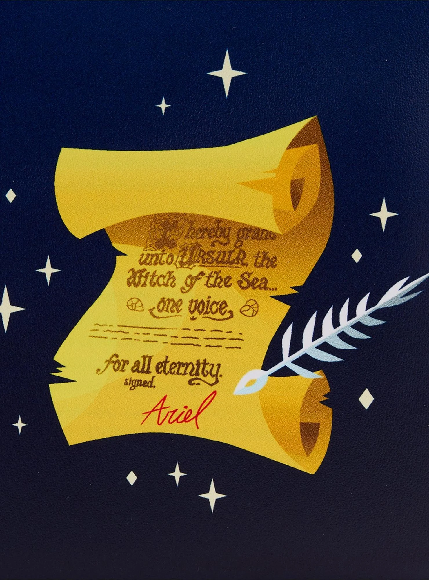 Channel your inner sea witch whenever you rock this villainous style from Loungefly! Inspired by the animated Disney classic, The Little Mermaid, this mini backpack features a vibrant portrait of the iconic lair scene between Ariel and Ursula on the front zippered pocket as die-cut glow-in-the-dark appliqués of Flotsam, Jetsam, and various barnacles lined the top. With a graphic of the contract on the back, this mini backpack also features an enamel brand badge, adjustable shoulder straps, and a top handle, now you can carry all your daily essentials in one perfect Disney Villain style!